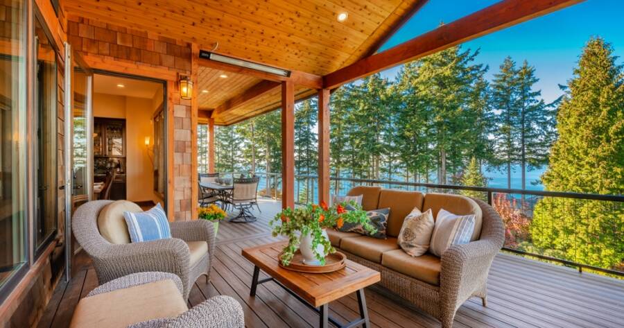 Consider the direction of sunlight throughout the day and the time of year. If you’re in a sunny climate, try to find a spot that offers some shade. You can install a canopy or pergola for additional coverage or plant trees to provide natural shade. If your area gets windy, try to set up your outdoor space in a sheltered corner to make the environment more comfortable.